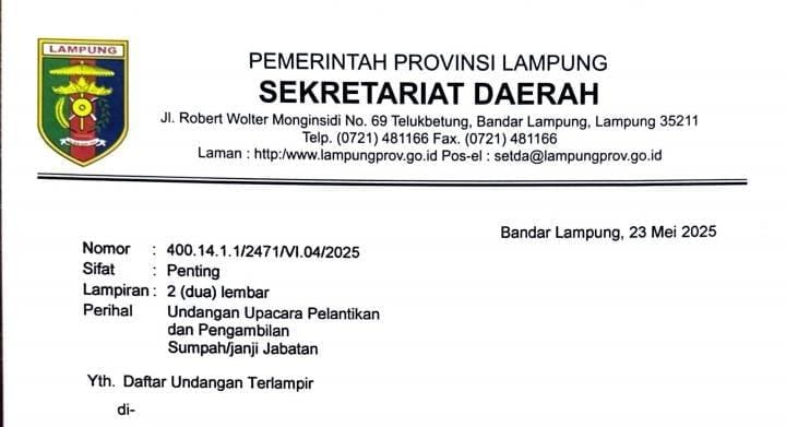 Pelantikan Pejabat Eselon II Digelar oleh Pemprov Lampung Pada Siang Ini