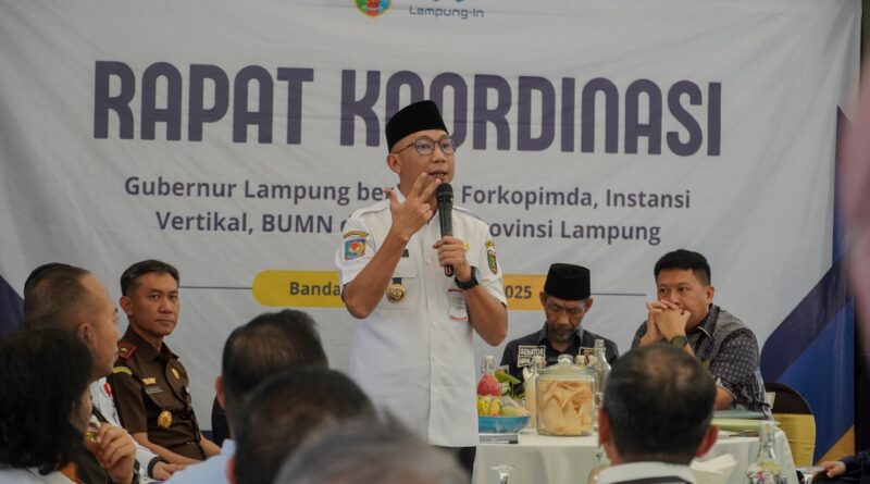 Bandar Lampung (Penutur.info) —- Gubernur Lampung, Rahmat Mirzani Djausal menekankan pentingnya koordinasi dan kolaborasi Pemerintah Daerah dengan seluruh Forkopimda dan pemangku kepentingan untuk mewujudkan Lampung Maju menuju Indonesia Emas.