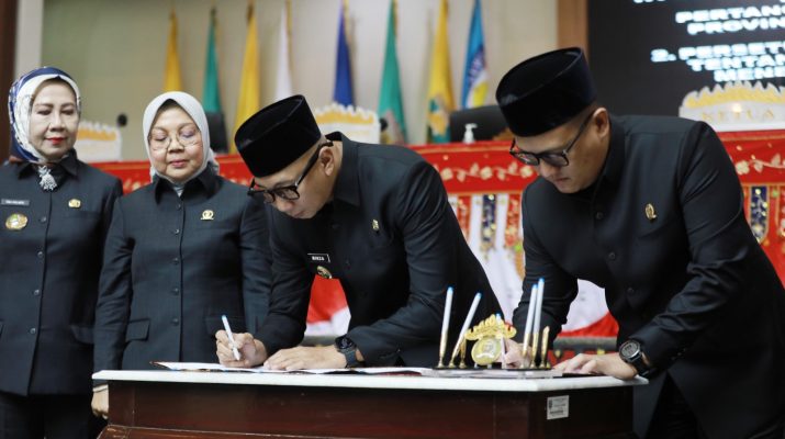 Penandatanganan berlangsung di Ruang Sidang Dewan Perwakilan Rakyat Daerah (DPRD) Provinsi Lampung, Rabu (11/7/2025).