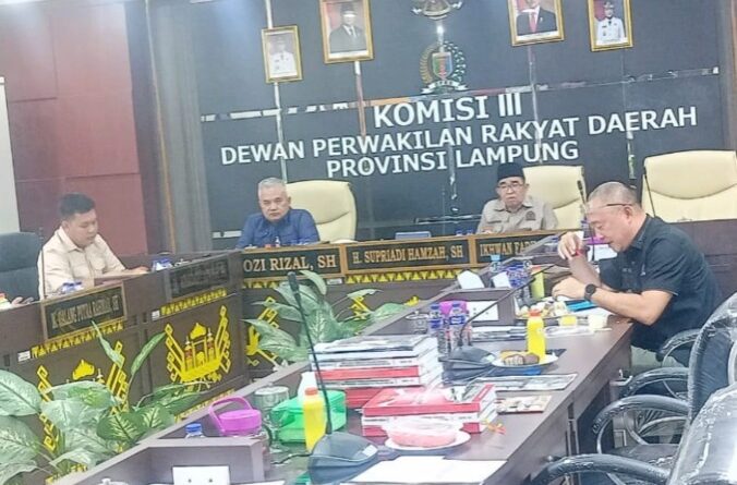 Komisi III Dewan Perwakilan Rakyat Daerah (DPRD) Provinsi Lampung menggelar Rapat Dengar Pendapat (RDP) bersama Organisasi Perangkat Daerah (OPD) mitra kerja dalam rangka evaluasi capaian target Pendapatan Asli Daerah (PAD) Provinsi Lampung Tahun Anggaran 2025 bertempat di Ruang Rapat Komisi III DPRD Provinsi Lampung. Selasa (6/1).